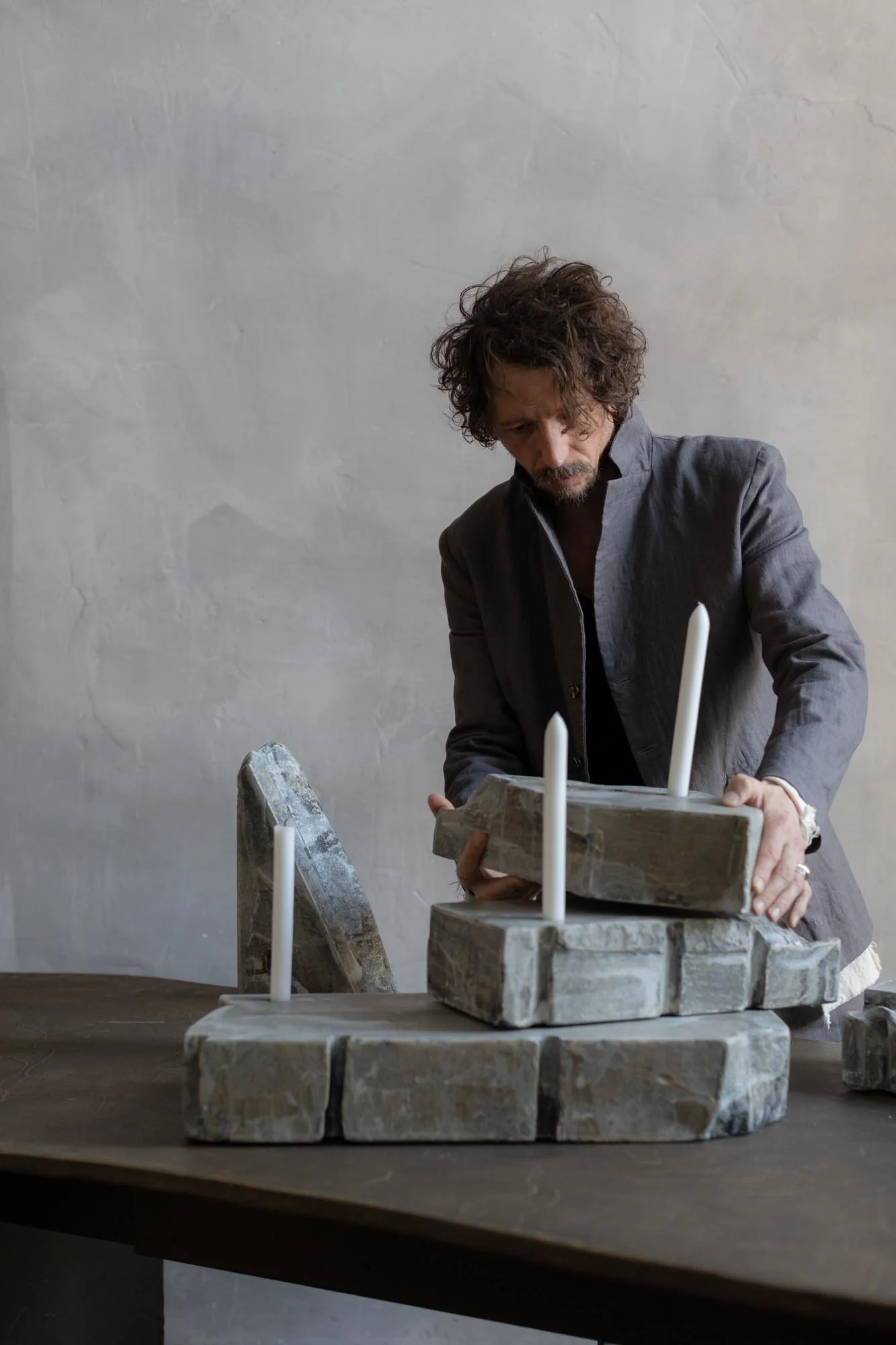 The current series is driven by the materiality of natural materials such as rocks, sand, clay - the original human-natural environment. Objects that look rough, but feel soft and intriguing, and with an emphasis on an intrinsic duality of use at, on or around the dining table.